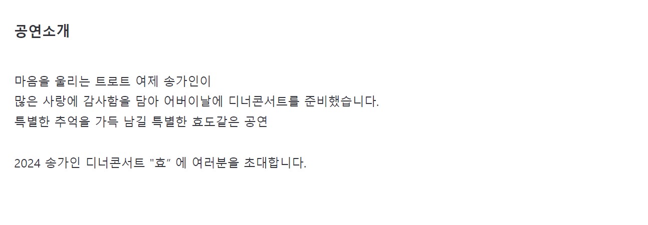 ● 콘서트 제목 : 2024 송가인 디너 콘서트 "효"