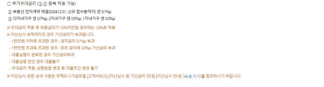 · 3개 이상의 자녀를 가진 가구의 경우: 연 0.7%p의 추가 우대금리